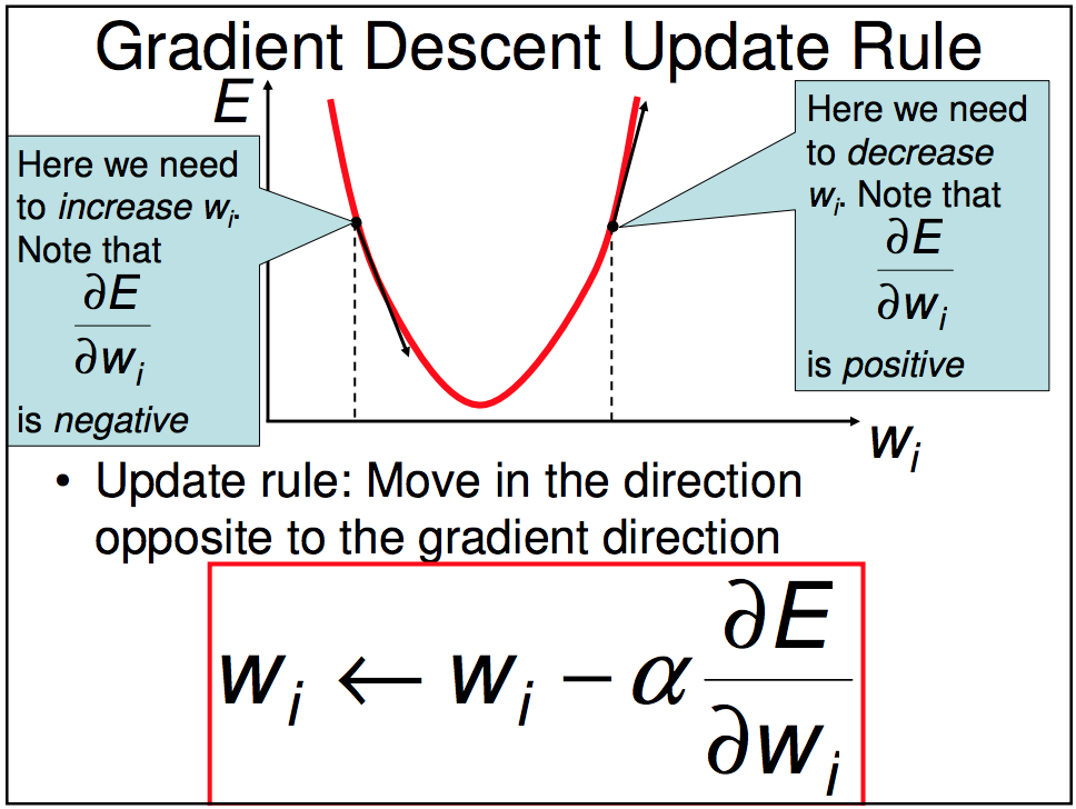 Misal, learning rate (\(\alpha\)) = 0.1,